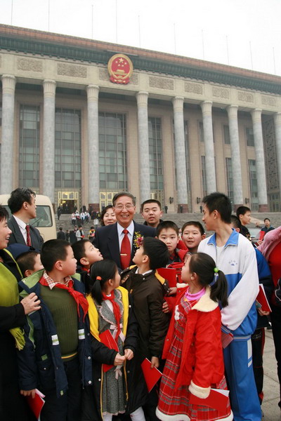李振声院士和少年儿童在人民大会堂合影