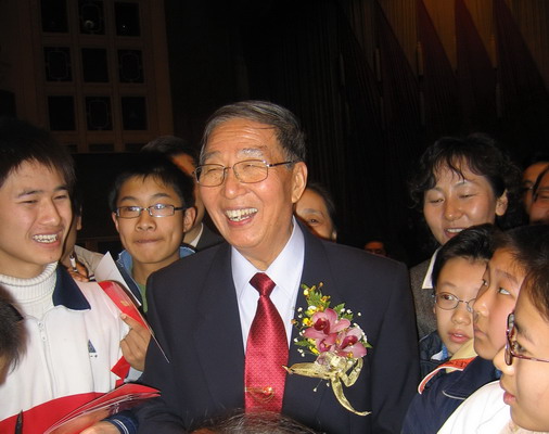 刚刚获奖的李振声院士被孩子们团团围住问长问短