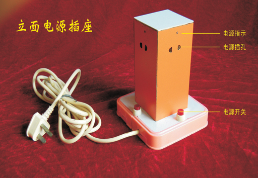 我根据数学课中学到的立体长方体是由多个面组成。如何把一个平面电源插座变成一个立面电源插座,成了我发明该项作品的设计思路。