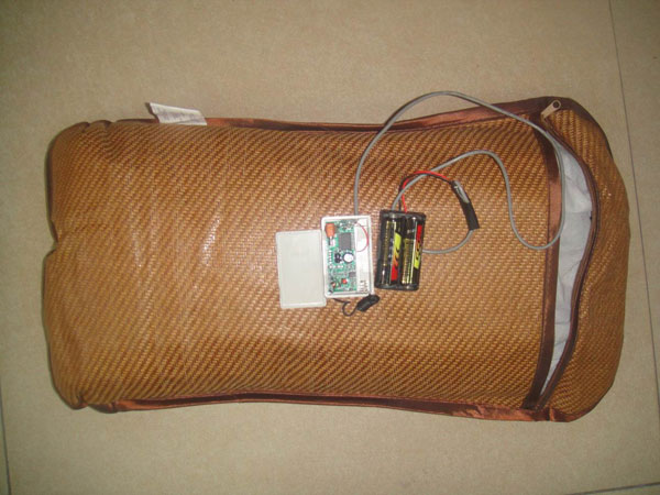 我的"一种提供聋哑人使用的闹钟枕头"作品摘要: 1、从我懒床的不好习惯来引发我发明这件作品。 2、我的发明灵感是在定时闹钟中得来的。 3、我的发明结构是"闹钟发射器"、"震动枕头接收器"。 4、当定时闹钟响时,震动枕头接收器开始震动。