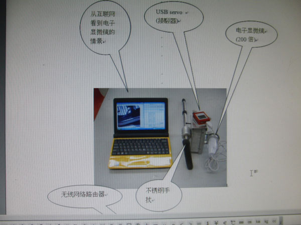 本发明是一套完整的全方位探究工具,协助学生进行多方面的实验及探究,并且可分享 整套设备与其它同学,使用的隔时拍摄软件是免费的,所使用的无线镜头及电子显徽镜非常廉宜但质素非常好的工具,。所有实验及操控可在互联网进行。如在户外进行探究,电源是个难题,本设计有一架太阳能发电系统,有储电池,用太阳能充电供应整个系统电源。 将GPS 全球定位系统 无线电话 无线网络路由器 上网咭 电子显微镜 组合并安装 在手扙上,实时操作人员到任何地方工作,我们都可以准确知道他的位置,及透过互联网看受损对象的损坏情况,以便作出维修,可以保障员工安全,减少工业意外发生。 运用科技使这些监察变成无线上网镜头 (IP CAM)。更扩大使用者的灵活性