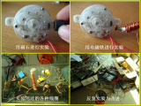 1、我发现定时开关工作时有一个带铁片的轮子在不停地振动,用一块磁石靠近它时就停止了振动。 2、中学物理中我认识了电磁铁,若将电器工作时的电流通过电磁铁就可以产生磁性来控制定时器的工作。 3、当电器待机时电流减小,电磁铁的磁性减弱,定时器进入倒计时状态,几分钟后定时器开关触点断开,完全断电,从而消除了电器的待机耗电。 4、寻找各种不同的电磁铁,但实验效果都不理想。我就用不同粗细的漆包线自己绕制的电磁铁,又先后选用多种材料当铁芯,最终获得了成功。 5、选择了一个普通的带开关插座,去掉原有的手动开关,将定时器及自制电磁铁置于插座内,并将其固定,接好线路。 6、增加阀值调节功能,以适应不同的电器。 7、功能测试。以电脑为例,将主机、显示器、打印机、音响等设备的插头插在受控插孔中,插座开关本来置于关的位置,插孔不通电。使用电脑时,将定时器开关顺时针旋出任意角度,受控插孔已经通电,定时器开始进入倒计时状态,这时我们启动电脑,导线中电流增大,电磁铁磁性增强,控制了倒计时,使之处于常通状态。当工作完毕后,我们只需要将电脑进行系统关机就可以离开,定时器又开始倒计时,过一会就会完全断电。