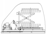 轮椅收纳箱的示意图(工作状态)如下:该轮椅收纳箱收起时总体尺寸为1400x1020x552mm,放下高度最大为1400mm,下旋转架可相对与固定架平行旋转90°,上旋转架可相对于下旋转架竖直旋转90°,移动架可相对于上旋转架滑移750mm。其个部件组成如图:1.固定架:该轮椅收纳箱的固定架用25x25x1.5的空心方形钢焊接而成,机架结构简单轻巧稳定,安全系数高。2.下旋转架:轮椅收纳箱的下旋转架是这个机构的核心,它包括固定于其上的动力装置、1个电动推杆和1个阻尼杆,3.动力装置:轮椅收纳箱的动力装置是这个机构的第二核心,它包括2个蜗轮蜗杆减速电机、1对链轮,其中减速电机与主动链轮连接通过链传动提供动力实现上旋转架的下转90°以及复位,结构简单稳定,安全性高。4.上旋转架:在这机架装有可供移动架滑行的轨道,本身的转动靠与从动链轮连接的尼龙带,还有连接于上下旋转架之间的阻尼可令上下旋转架的相对旋转减少颤动趋于稳定。5.移动架:其本身两侧的支架可放入上旋转架中的固定轨道,可相对与上旋转架平行移动,动力也是有与从动链轮连接的尼龙带提供。6.外罩。