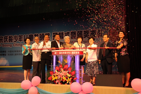 我会副主席唐闻生宣布"第十一届宋庆龄少年儿童发明奖开幕"