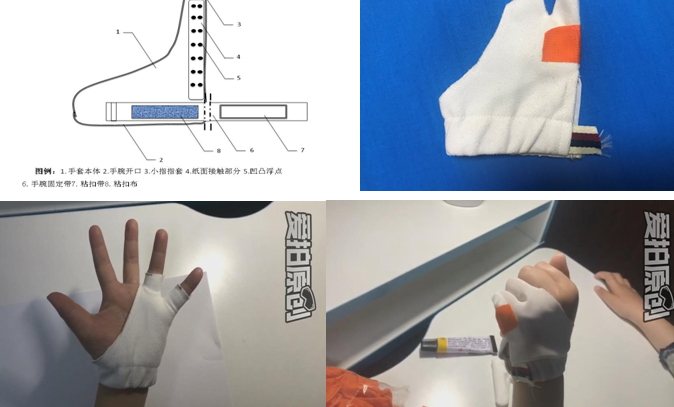 手套的尺寸大小需要多种规格以适应中小学生的手指尺寸;仍然存在活动不够灵活等一系列问题,需要后续研究改进。