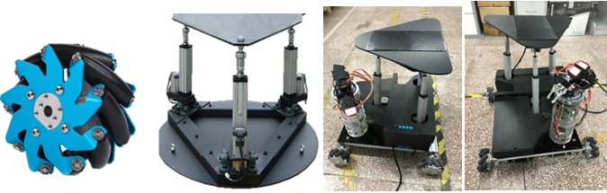 1、麦克纳姆轮的采用,可以灵活地在狭小空间全方位运动。2、三个自由度的并联平台,具有俯仰、翻滚、升降的动作,可以调整自身的角度,并且可以承受较大重量。3、独立智能控制,底盘可以操纵手柄或手机APP全方位灵活运动,平台可以在崎岖不平的路况下自动调整,保持平衡状态。