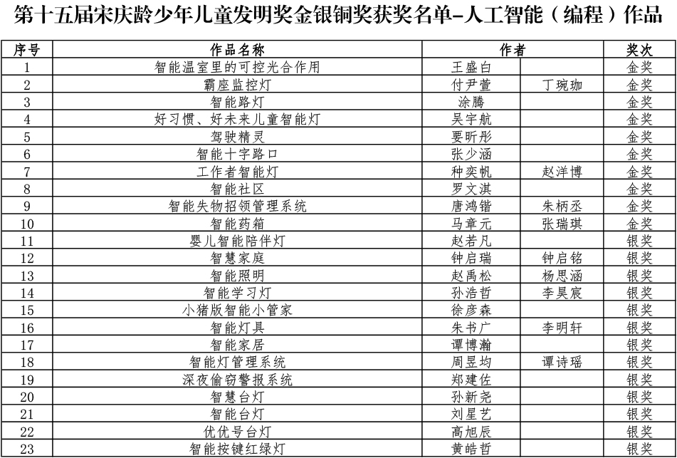 第十五届宋庆龄少年儿童发明奖金银铜奖获奖名单-人工智能(编程)作品.pdf