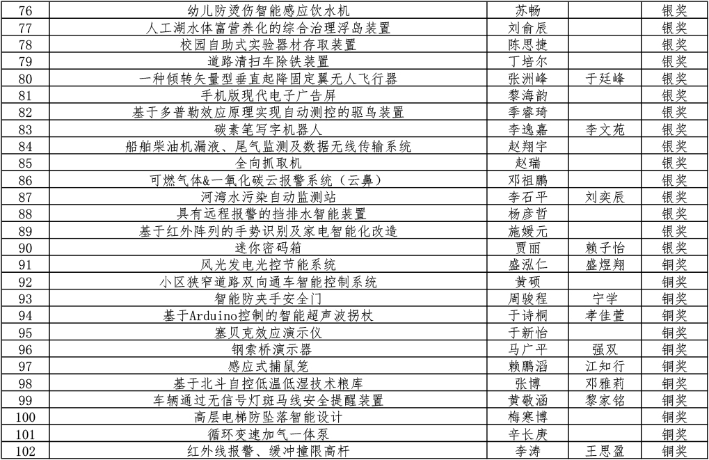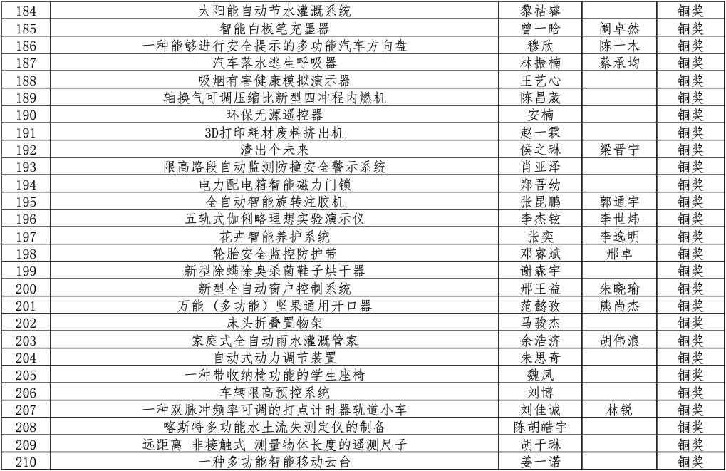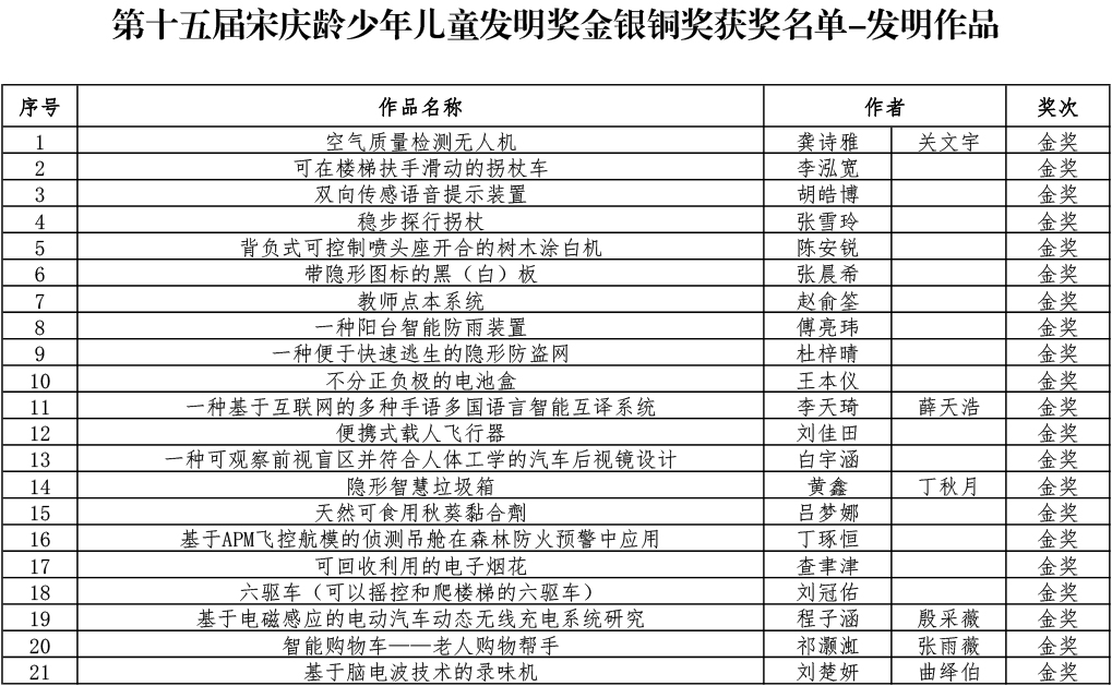 第十五届宋庆龄少年儿童发明奖金银铜奖获奖名单