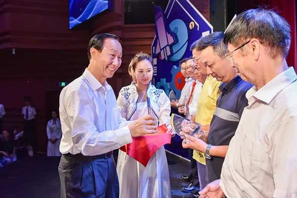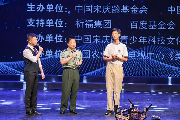 8月19日下午,第十五届"宋庆龄少年儿童发明奖"颁奖仪式在中国宋庆龄青少年科技文化交流中心举行。第十二届全国政协副主席、中国宋庆龄基金会主席王家瑞,航天英雄、特级航天员杨利伟,中国科学院院士赵进东、姜杰,中国宋庆龄基金会常务副主席杭元祥、副主席井顿泉,中国发明协会常务副理事长兼秘书长余华荣,祈福集团副董事长兼总经理孟丽红, 百度基金会副理事长周达,篮球冠军郑海霞,击剑奥运冠军仲满等出席。