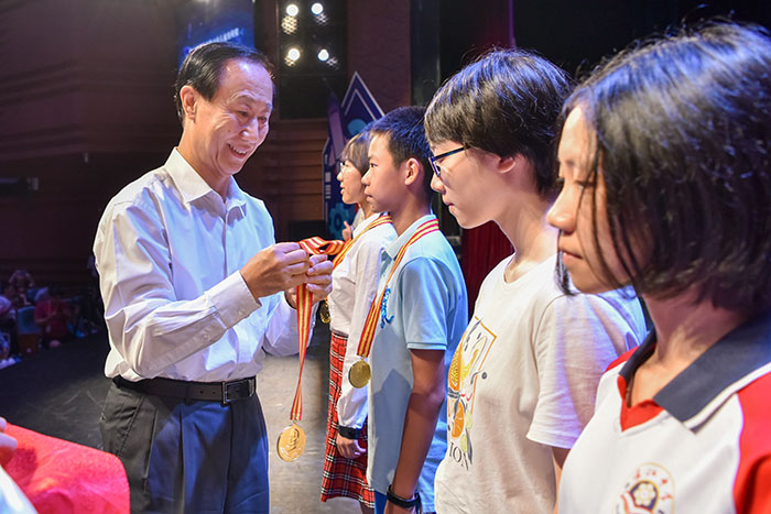 王家瑞为获金奖的少年儿童颁奖