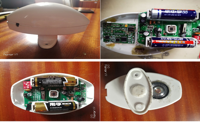 1、单片机,2、语音芯片,3、喇叭,4、人体接近传感器,5、电池,6、外盒。