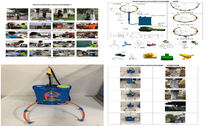 在美丽城市建设过程中,园林绿化大面积采用乔木作为景观植物。由于自然条件恶劣,易受到病虫害侵蚀,目前普遍采用人工粉刷涂白剂预防虫害。但人工涂白效率低、耗时长。希望设计一款能快速涂白且多模式使用的工具。