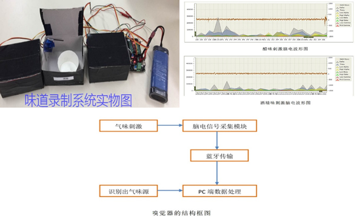 通过基于TGAM内核的脑电信号传感器采集脑电波数据,检测不同群体对不同气味刺激时脑电波输出数据的变化,通过数据处理、