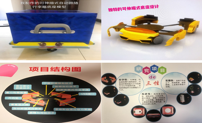 在学校进行项目演示讲解时,大方得体、阳光自信的介绍让我收获了大批粉丝,更让我兴奋不已的是,已经有很多粉丝在观摩结束后开始向我预定我所设计的“一种可伸缩式自动跟随行李箱底座——影宝”了。