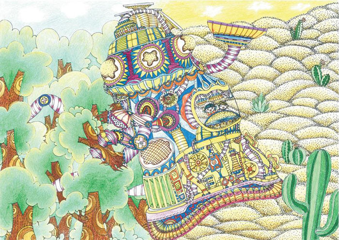 蚂蚁森林仍然依靠人工在荒漠上种下一片片树林,我制作的这台机器不仅可以吸收荒漠空气中的水气储备起来用以浇灌树木,还可以自动孕育树种,培育各种适合种在沙漠中的绿植,自动浇灌施肥养护,而且如果遇到沙漠中已有的植物也会绕道前行不伤害荒漠中的任何生命体。这样,我相信未来不仅可以节省劳动成本,使沙漠变成可以居住的绿色家园,还可以实现住在森林里的梦想!