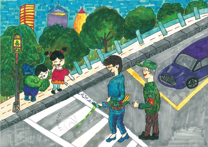 作品说明:通过拐棍上的雷达,可以让盲人清楚的知道路况,可以大胆走路,放心过马路。