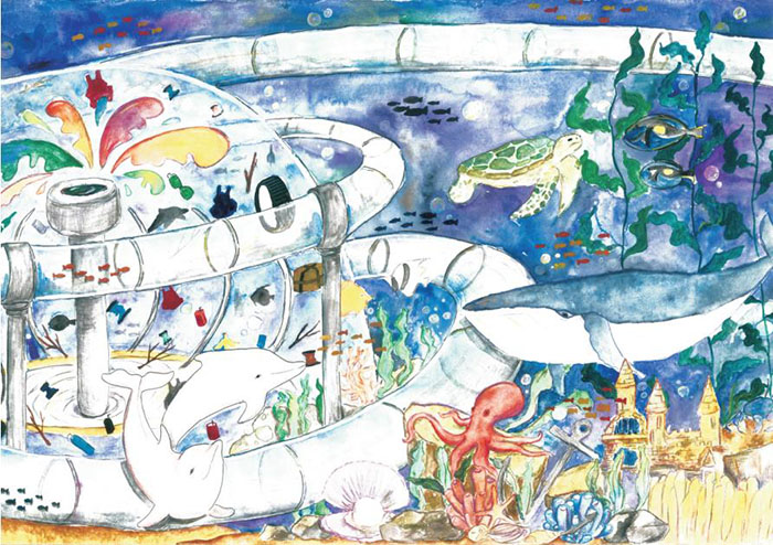 作品说明:海洋受到垃圾或各种废物污染的问题也越来越重,因此[海详清道夫]---海洋仿生兽便会收集海里和海脉上的各种垃圾和废物,收集完便会到废物转换站转换和加工,生产出有用和对生物有益的营养或养分。除此之外,这些「海洋清道夫」还能够协助我们监控水质的变化,为我们带来详细的数据,还能解决海里的藻类富氧化或运船漏油等原因而导致覆盖水面等问题。