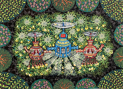 作品创意说明:随着祖国“一带一路”经济战略的全面部署,我们美丽的新疆兵团在未来加快了科技兴农的脚步。“复兴号是采摘、深加工、提炼、储存、销售为一体的大型智能工厂,将我们库尔勒的香梨一次性转化为新能源电池建筑材料,色素,香精,果汁……销往世界各地。绿色环保的光波灭虫,让果实上绝对无农药的残留,同时,也保证了这些果园鸡的天然美食无毒无害……在不久的将来,我们尽享在绿色可持续发展的生物链上,健康、快乐、幸福的生活。到那时,我们的家乡一定是丝绸之路上一颗亮丽的明珠!