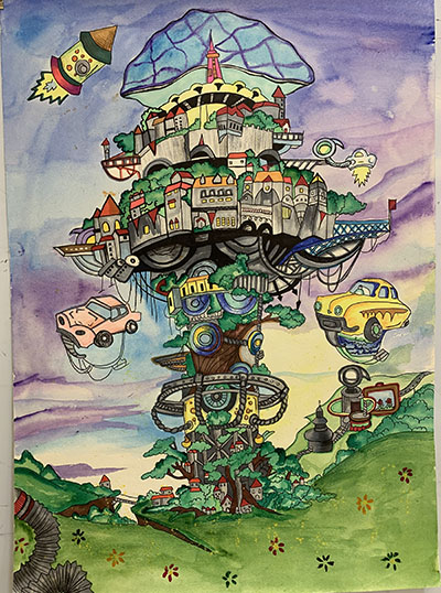 作品创意说明:时代在发展,科技在进步,奇迹无处不在,在未来,伫立在云端的天空之城将 不再是梦想,在这里,您将生活在梦幻般的童话里。