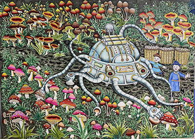 作品创意说明:每年夏天,巴仑台草原到处生长着野生蘑菇,这款飞行采摘器,采摘前可以先设置好搜索的方位及范围。它有高智能探头可以很快搜索到蘑菇密集区域的正确位置,它长长的手臂可以自由伸缩输送采摘下来的蘑菇;采摘蘑菇时可以根据需要变换不同的抓手或铲刀,每一个抓手和探头都有自动感应识别有毒蘑菇的装置。当人们无法到达的险要地势,它却可以自由飞行的进行采摘。蘑菇陈采摘器里还有烘于脱水装置,它极大地提高了人工采摘的效率。给牧民带来了非常可观的经济效益。