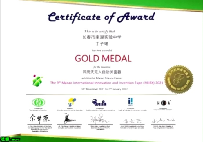 应澳门创新发明协会邀请,我会组织了第十六届宋庆龄少年儿童发明奖14件金奖作品通过线上方式参展。组委会经过层层评审,14件参展作品全部荣获金奖,获得了喜人的成绩。