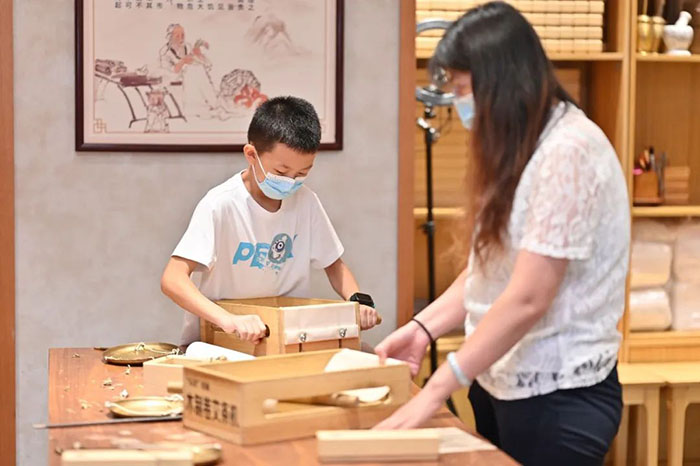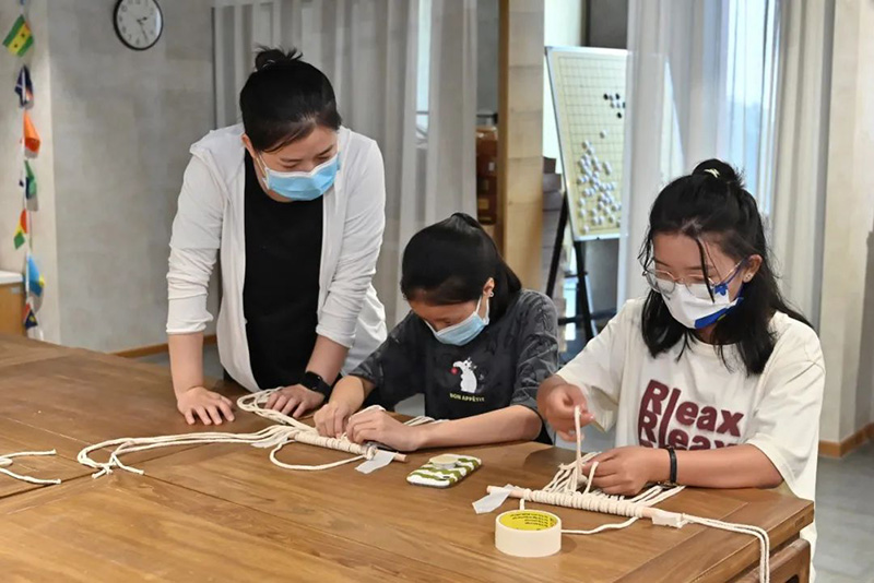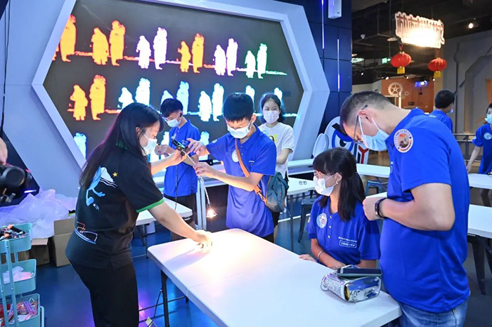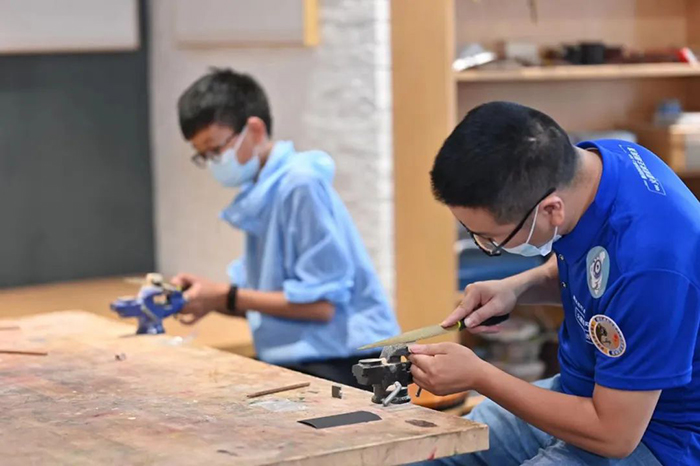 8月18日,学生们在中国宋庆龄青少年科技文化交流中心共同参与以“科技和动手”为主题的综合实践活动。杯子乐团演奏、编程赛车手活动、制作太阳能小车等体验活动提高了学生的协作意识,加强了动手能力,也让学生们学到了人工智能、清洁能源等不同领域的知识;编结壁挂篮、中医艾条制作、木艺燕尾榫等传统文化特色体验让学生们感悟古老的编织艺术的极致匠心,中医药文化的博大精深和中国古建筑文化的魅力。