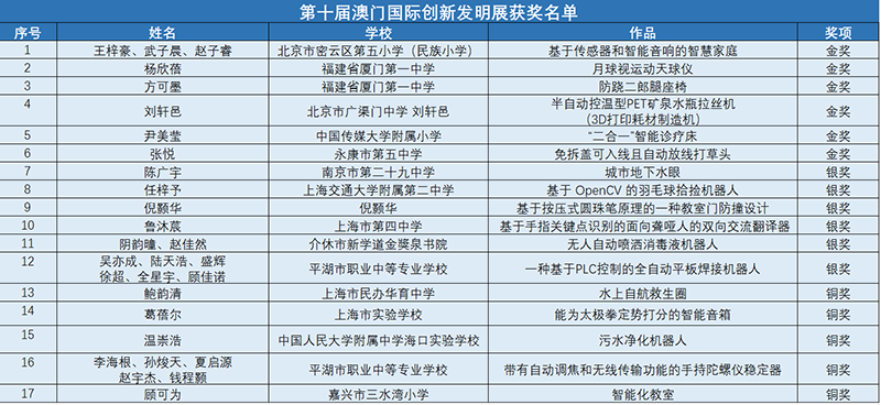 科技筑梦,创新未来 | 第十七届宋庆龄少年儿童发明奖获奖作品在澳门喜获佳绩