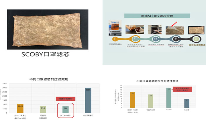 我组项目使用SCOBY(是纤维素組成)用来制作口罩滤芯。