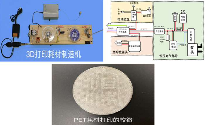 3D打印耗材拉丝机将塑料瓶转化为3D打印耗材,使3D打印成本低廉,利于环保,满足日常3D打印教学需要。