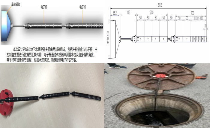 为了解决城市地下管网监测的“盲点”问题,我们设计出了一种新型的监测设备,主要包含主控制盒以及多个串联起来的电子杆。