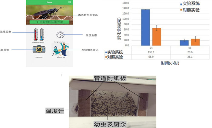 透过运用黑水虻消化厨余,加上24小时的自动系统,能够让黑水虻时刻在最高效率消化厨余。系统的程序已被设置为当温度超过35℃,风扇便会开启以降温;而当湿度降至65%一下时,加湿器会开启以保持环境湿润。由此,使用者无需任何操作便可让黑水虻以最高侠侣消费厨余。第二,系统也考虑到黑水虻可能会逃逸。因此,一方面纱网被罩在系统之上,我们也搜查论文,研究表明黑水虻并非入侵物种,对生态链不会有太大损害。第三,系统方便了使用者收集有用的产品。研究表明,黑水虻成虫会在产卵时前往高处和干燥的地方。因此,我们将整个系统分为厨余消化区和产品收集区,让使用者想可以单独收集产品,在添加厨余的时候不用担心黑水虻成虫飞出。第四,用户也可用手机软件随时随地监测厨余消化环境,更可透过人工智能技术自动提醒使用者添加厨余。