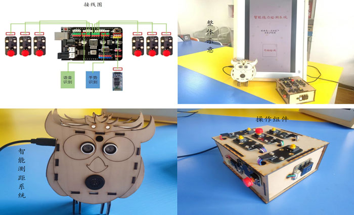 硬件系统基于Arduino Uno智能中控、电子显示屏、智能识别系统、智能检测系统组合而成。智能测距系统与点动控制系统皆以经过激光切割设计成型的3mm椴木板为主来制作外观设计部件。