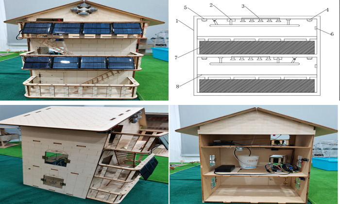 本作品结构包括主控制系统、烟雾传感器、火焰传感器、消防警报灯、语音播报模块、光伏组件模块、储能系统、控制器组成的开关电路、驱动电路和传感电路、喷洒、梯形晾衣架、铰链连杆、盖板和驱动电机。利用传感器监测是否出现火警,通过连杆结构与活动盖板铰接,形成联动的机构,梯形晾衣架放下时,盖板协同打开,日常作为晾衣架,火警时作为逃生梯使用,光伏发电组件在楼宇出现断电时,可为家庭和逃生梯供电,为逃生通道保驾护航。