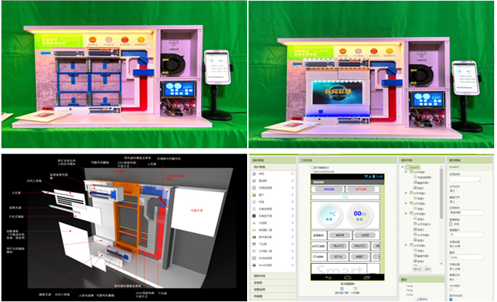 在模拟日常生活起居过程中发现,智能家居使用中的几个重要功能:家居温度控制系统、家居湿度控制系统、感应系统、可更换功能模块化系统、智能灯光系统、可扩展升级电路系统。针对解决以上问题和不同的使用场景提出了全新的解决方案:墙体龙骨为伸缩设计适应各种层高,墙体内设计空调风道,冷、热风道换向机构,内置单片机智能家居节点和由单片机控制的伺服电机风板控制机构,对温度、湿度进行分区精确控制。同时还内置了各种传感器、强电电路和快接装置,面板采用模块化设计,可以自由组合,可以使用空白面板、音响面板、电视机面板、插座面板等。同时还集成灯光系统,整体接入智能家居系统集中控制,多套系统可以并网协同工作,作为“智能扩展坞”在硬件基础上为智能家居组网提供了基础条件,组网以后还能实现更多交互的无感试交互功能。为达到以上功能,在制作中我们采用广泛应用的常规电子零件、3D打印、图形化编程等技术实现模型制作和功能展示。