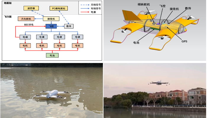(1) 通过模型设计与飞控程序,让无人机既能在水面上垂直起飞,也能在空中高速水平飞行;