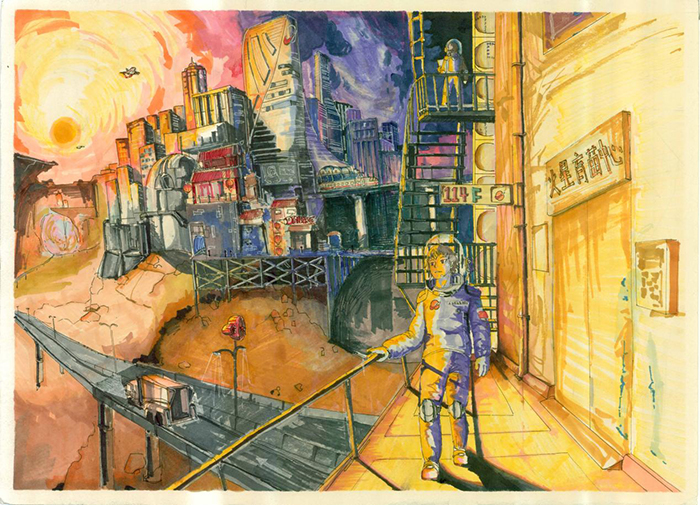 2145年人类科技高速发展,地球资源被过渡开采已经不满足人类需求,人类联合发展航天科技开启星际移民时代,其中火星移民项目受到联名政府的大力支持,并建立了140座火星基地站,开发火星资源以及“移民计划”的实施。画中所展示的就是火星14号开发基地的一角,人类高速发展,并发明了众多先进的科技,其中全智能调控太空服更是先进,能够保证移民在火星能够安全的存活,画中时间为夕阳落日。