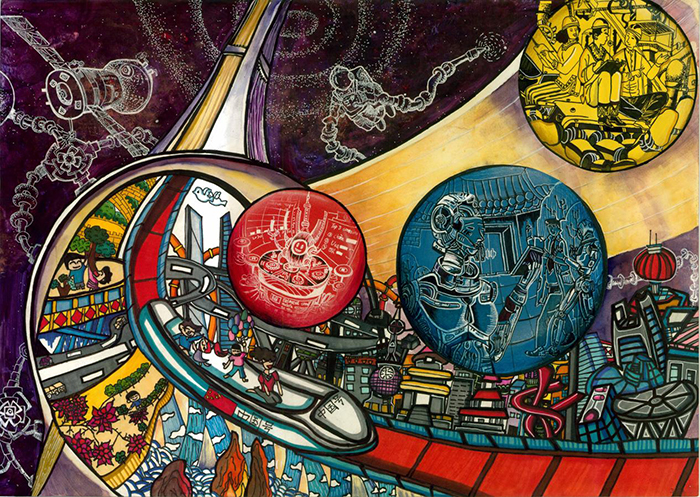 随着环境不断地遭受破坏,地球在若干年后可能不宜人类居住,“命运共同体号——未来人类太空智能隧道居住站”仿制地球的生态系统建设,能智能调节气候、土地海洋等资源,实现环保循环。为人类提供宜居的第二“智慧地球村”。