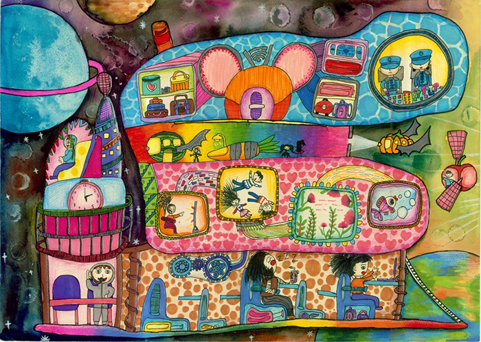 我的飞行器叫天马,它可以在太空中无拘无束的飞行,它的速度和光速一样,非常快,人们往返地球和太空非常方便,它还配备了许多小的飞行器,有西瓜、胡萝卜、南瓜、苹果飞行器。小飞行器可以单独去执行任务,非常方便。天马可以带着人们去太空中长期生活,这里可以种菜种花,可以养鱼,人们生活的物资应有尽有,孩子们还可以在这里上学做科学实验,还可以发射各种卫星。天马飞行器的表层安装了各种漂亮形状的太阳能板,太空垃圾只要碰到它们,便会立刻被它吸收熔化,变成它的能量供飞行器使用,你们想不想坐上我的天马飞行器去太空中游览圈呢?