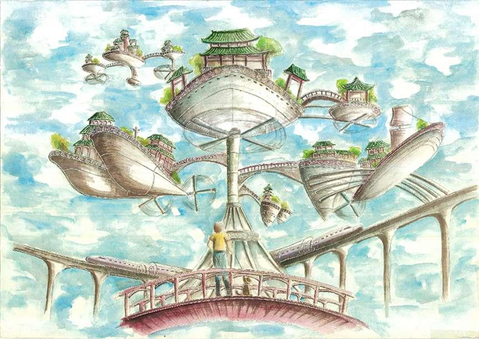 天空城飘在空中,有了天空城人便可以住在天上,大大解决地方不足的题,而天空城的外表跟随不国家特色而建造,外表好似古城的船。“天空城”不但解决人口膨涨题,更展现了人科技的伟大。